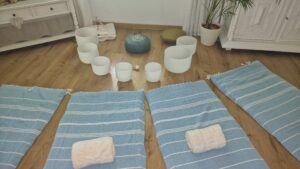 Si vous choississez un massage sonore avec instruments de cristal, les sons émis sont créer par différents instruments intuitifs en cristal, bol tibétain, tambour à langues etc.
